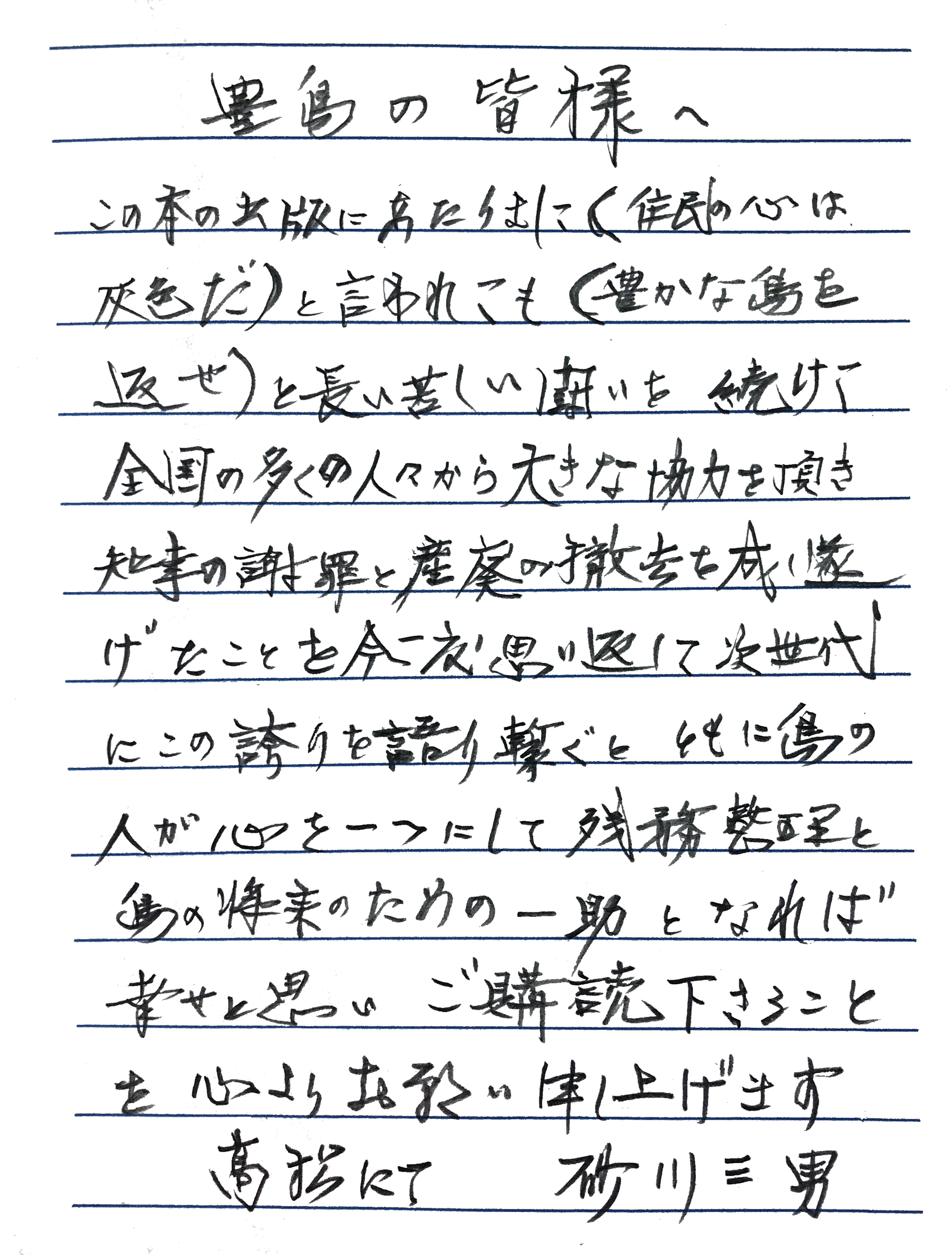 1928年豊島生まれ。有害産業廃棄物不法投棄事件の住民運動を率いたリーダーのひとり。